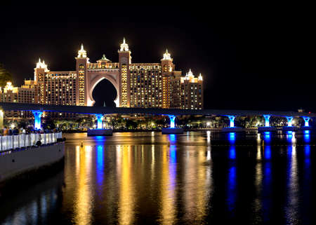 DUBAI, UAE-NOVEMBER 7: Night view Atlantis Hotel on November 7, 2013 in Dubai, UAE. The resort consists of two towers linked by a bridge, with a total of 1539 rooms.