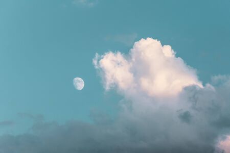 Tinted sky Moon and clouds in the evening sky