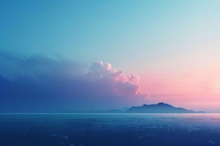A creative digital illustration depicting Horizon gradient digital wallpaper art from indigo to dawn pink, misty horizon line, peaceful dawn vibe, golden hour soft light, commercial art style. This AI-generated artwork features unique visual elements suitable for various commercial and editorial applications. AI-generated illustration.