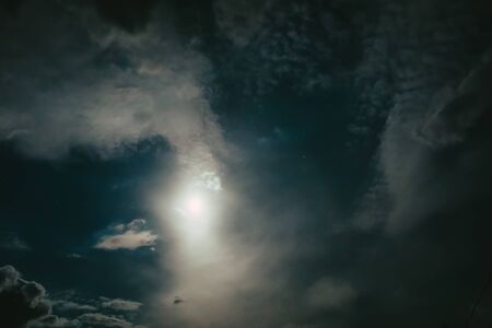 The moon and the stars in the night and cloudy sky. High quality photo
