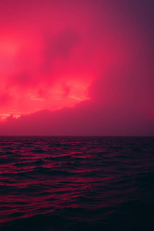 Clouds with long shadows above the Earth and sunlight reflection in the sea