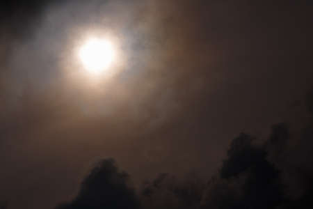 Orange sun disk isolated on smoky sky