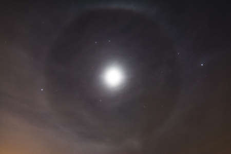 Moon halo and clouds at the night