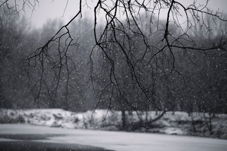 Dead branches in the snowy forest
