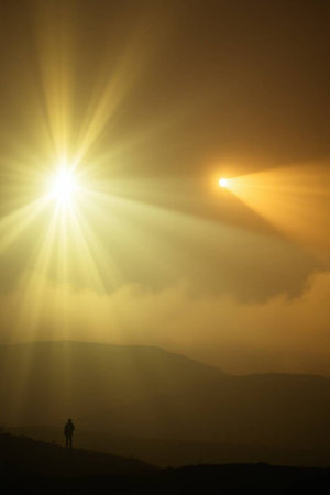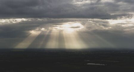 light of the sun In the evening shining through the clouds Down as a beam of light.