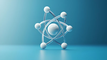 molecular background that surrounds the atomic nucleus, with a mix of dark and light colors