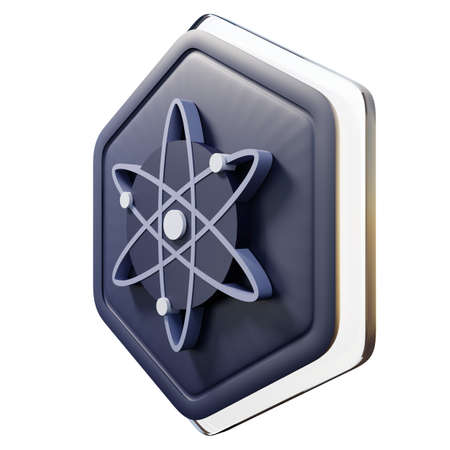 Cosmos (ATOM) Badge Right View Crypto Isolated On White Background Blockchain Technology 3D Rendering