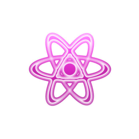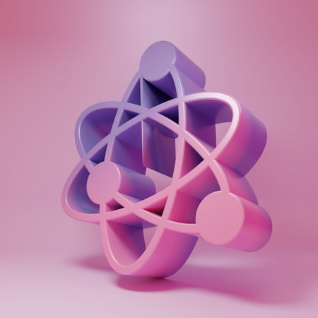 Purple-pink Atom icon isolated on pink background. Symbol of science, education, nuclear physics, scientific research. Minimalism concept. 3D render illustration.