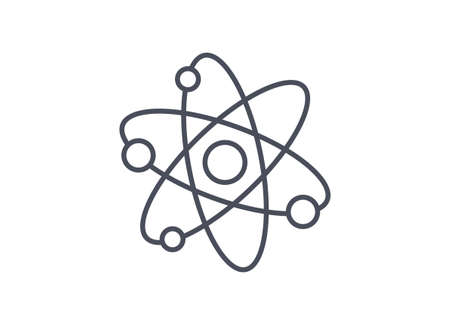 Atom structure icon in flat outlined grayscale style. Vector illustration.