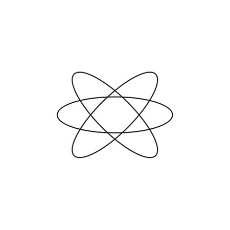The symbol of the atom. Doodle outline style. A chemical sign. Hand-drawn black and white vector illustration. The design elements are isolated on a white background.