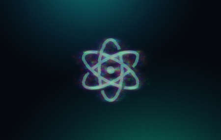 3D Illustration Atomic structure. Atom is the smallest level of matter that forms chemical elements. Glowing energy balls. Nuclear reaction. Concept nanotechnology. Neutrons and protons - nucleus.