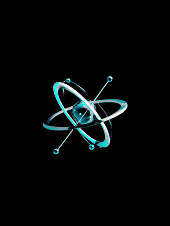 Futuristic Model of Atomic Structure with Electrons Orbiting a Central Nucleus in 3D Digital Art