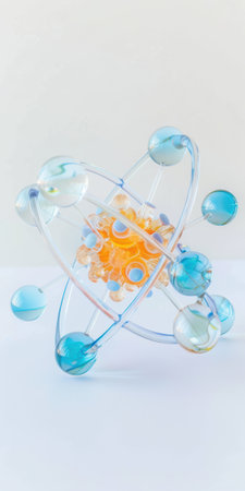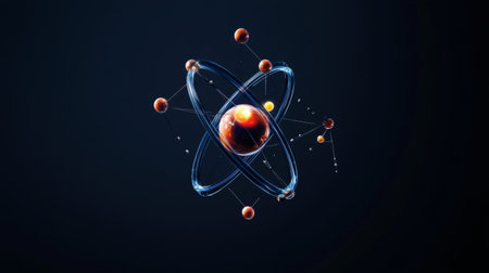 An abstract illustration depicting an atom with electrons orbiting around a central nucleus. This creative representation highlights the beauty of atomic structure, combining science with modern design elements.
