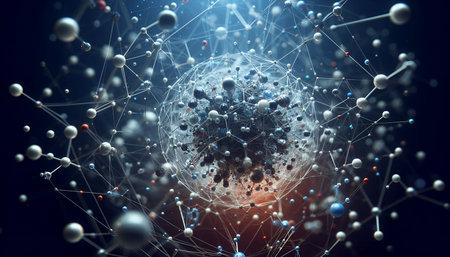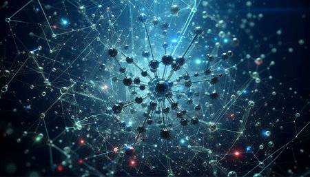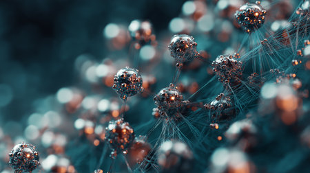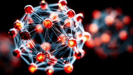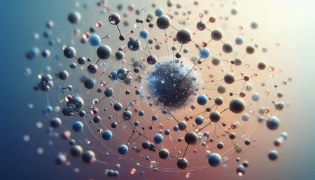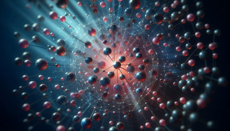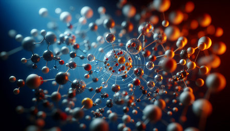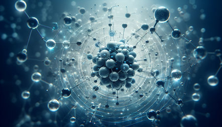 A captivating close-up view of a molecular structure featuring glowing particles against a blue background, symbolizing innovation and the wonders of science and chemistry.
