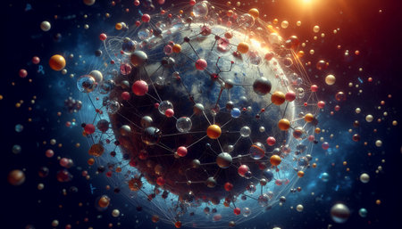 A stylized image of atomic orbits and particles, showcasing the abstract concept of atoms and their interactions in a creative manner.