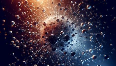 Abstract Conceptual Illustration of Atoms and Nuclei Surrounded by Glowing Energy in Cosmos