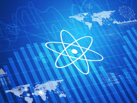 Atom on abstract background. Science and technology concept. 3D Rendering