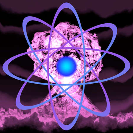 Nuclear explosion with symbol of atomic energy