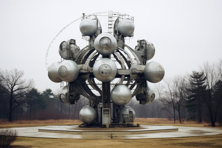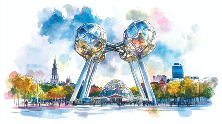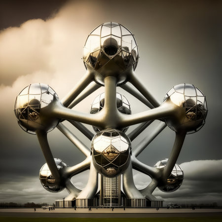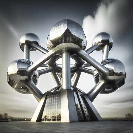 illustration of the atom monument atomium in brussels, generated by AI. High quality photo