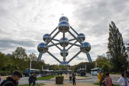 Brussels / Belgium, October 2019: Atomium on a cloudy day in Brussels, Belgium