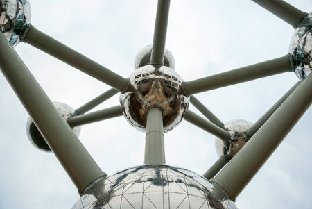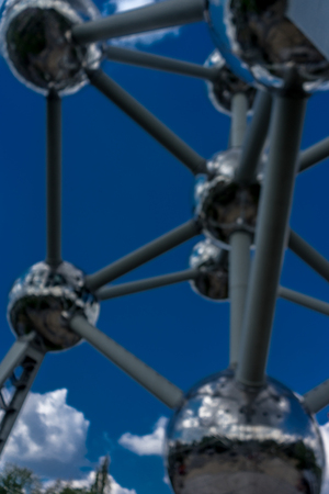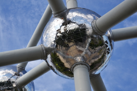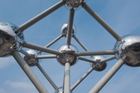 The famous Atomium located in Bruxelles. It is a monument, designed by André Waterkeyn, originally built for Expo '58, the 1958 World's Fair.