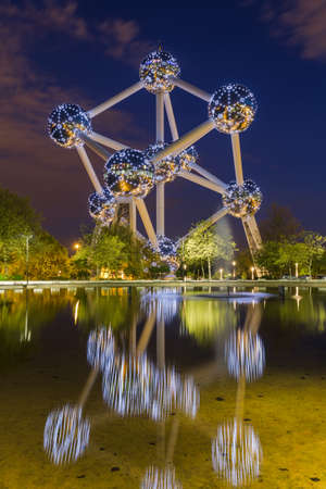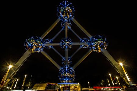 Brussels, Belgium, June 17, 2011 - The Atomium by night, a famous monument in Bruxelles originally built for Expo