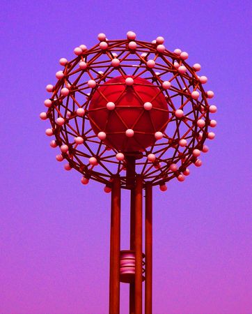 Steel Sphere or Balls against a blue sky on a bright summer day