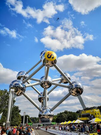 July 7th 2019 - Brussels, Belgium: People gathering at the Atomium for the occasion of the 2019 Tour de France in Brussels