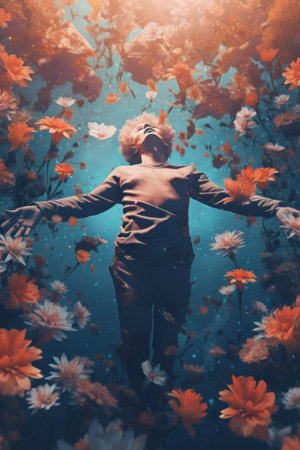A person standing in a field of flowers. Generative AI image.
