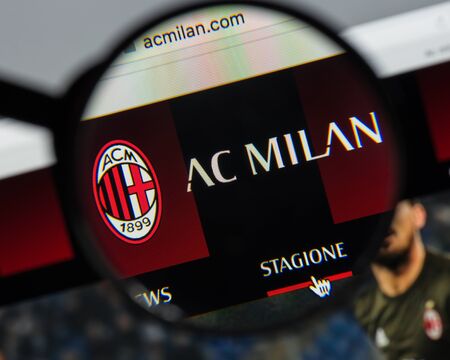 website homepage. It is a professional football club in Milan, Italy, founded in 1899. AC Milan logo visible.