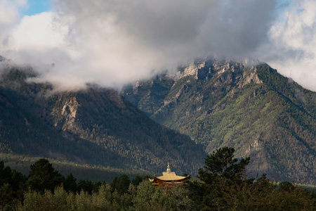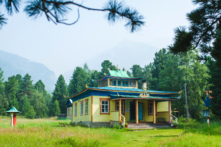 Arshan, Russia - August 16, 2017: Buddhist datsan Dechen Ravzhalin in Arshan. Buryatia