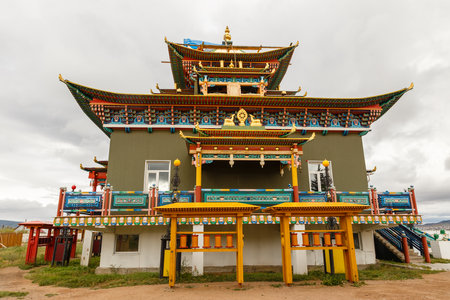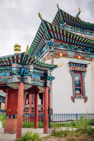 Beautiful modern Buddhist temple in the Ivolginsky datsan near Ulan-Ude. Buryatia, Russia