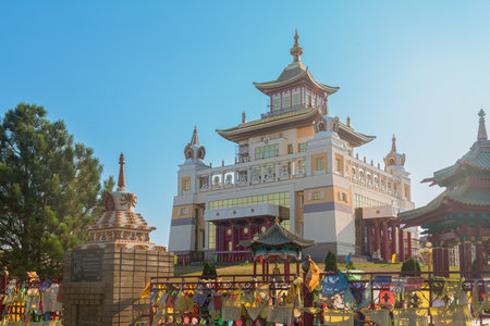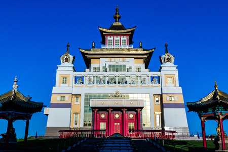 View of the Buddhist temple Golden Abode of Buddha Shakyamuni. Elista, Republic of Karelia, Russia