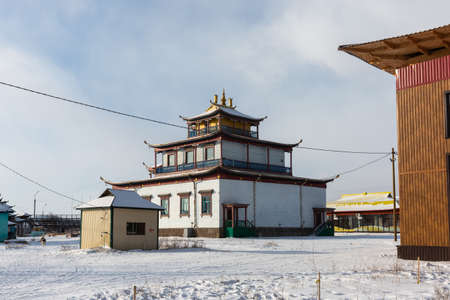 Ivolginsky Buddhist Temple on a winter day in the Republic of Buryatia, Russia