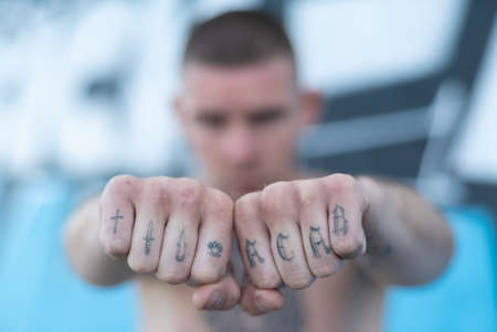 ACAB tattoo on the arm of a bully man