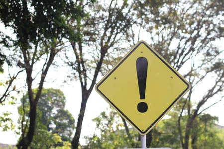 Yellow warning sign with exclamation mark, indicating caution and alertness in various settings, emphasizing safety concerns and awareness for potential hazards