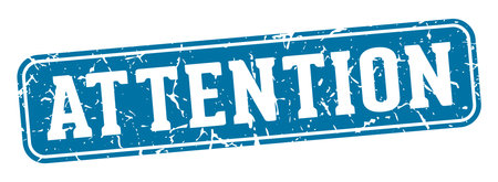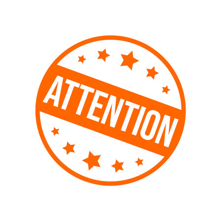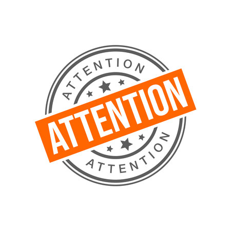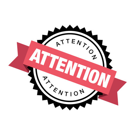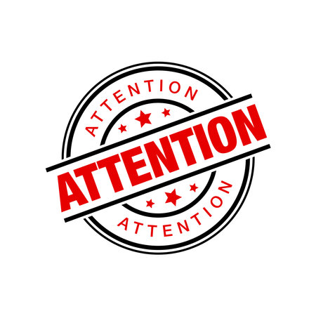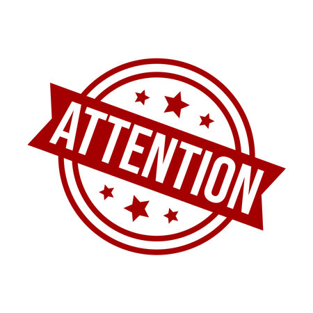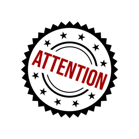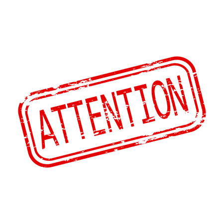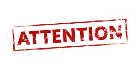 Sign attention. Vector element in grunge style. Old red stamp on white background. Design template
