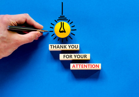 Thank you for your attention symbol. Concept words Thank you for your attention on beautiful wooden blocks. Beautiful blue background. Business thank you for your attention concept. Copy space.