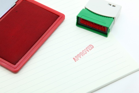 Document that has been stamped printed on Approved in large diagonal red text and rubber stamp, Business credit concept