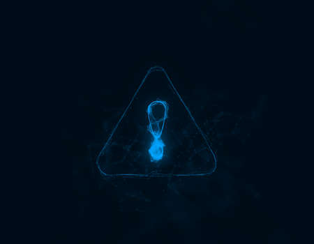 Exclamation mark in triangle icon with plexus effect. Connected lines with dots. Illustration