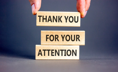 Thank you for your attention symbol. Concept words Thank you for your attention on beautiful wooden blocks. Beautiful gray background. Business thank you for your attention concept. Copy space.