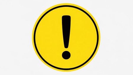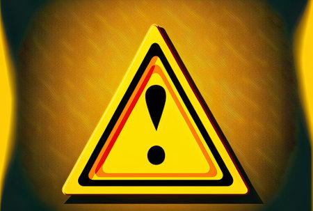 A close-up of a bright yellow diamond-shaped warning sign featuring a bold black exclamation mark, indicating caution or danger.