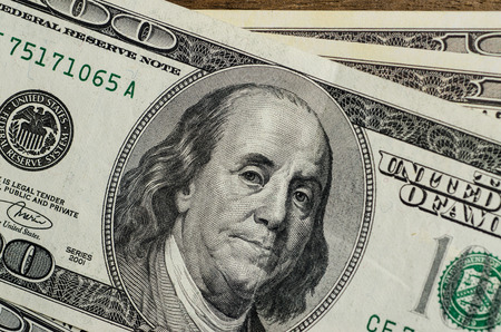 Closeup portrait of Benjamin Franklin on 100 us dollar bill