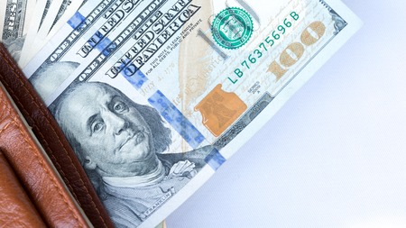 100 dollar bill. Isolated on white background. Selective focus
