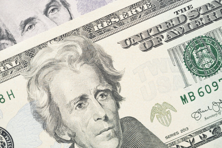 Closeup photo of 20 dollars of United States of America banknotes