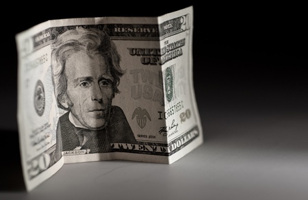 Twenty Bucks in the Dark Twenty American Dollars Bill Horizontal Studio Photo