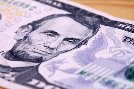 President Lincoln s portrait on the banknote closeup