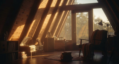 Cozy attic studio with natural sunlight