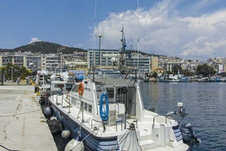 KAVALA, GREECE - JUNE 22, 2019: Fishing boats and yachts at the port of city of Kavala, East Macedonia and Thrace, Greece