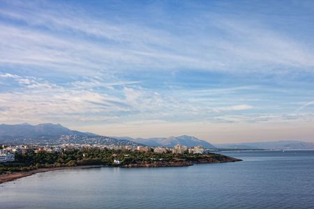 Overview of the coast of East Attica from the Cape Sounion in Greece